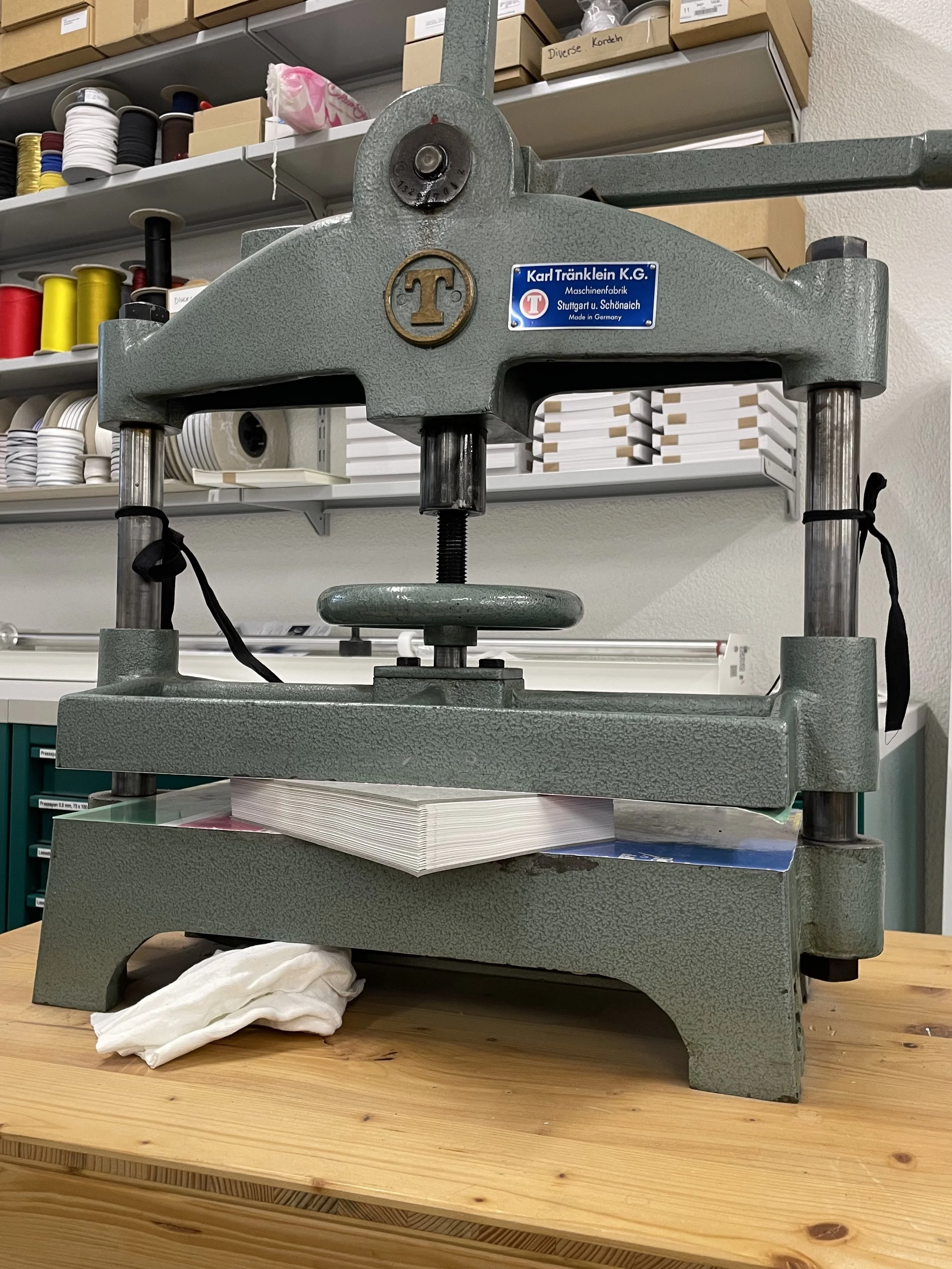 In der Buchbinderei von Paul Renfer in Dübendorf: Besprechung zur Seitenfolge, Wahl von Papier und Titel-Prägung